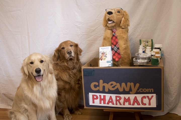 Ernest and Petey decided to visit their friendly Chewy pharmacy to stock up on some Interceptor heartworm preventative.