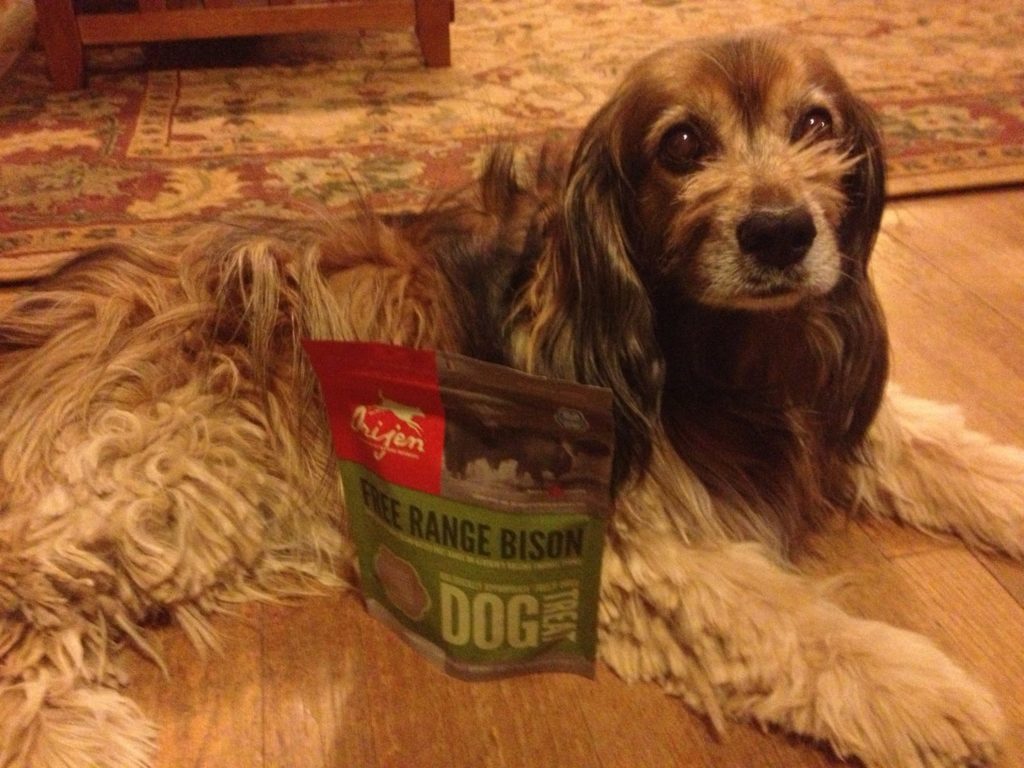 Kelly loved Orijen Freeze Dried Bison Treats! Because they are quality ingredients made in a quality company, I give them an A plus. Because they taste great, Kelly gives them four paws up! (You can get all varieties on chewy.com too!)